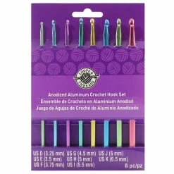 These crochet hooks feature optimally smooth throats and rounded heads for the most precise, professional-looking work. Eight colorful aluminum crochet hooks measuring six inches in length are included in this set. The set includes the popular hook sizes of D-K (3.25-6.5 mm).