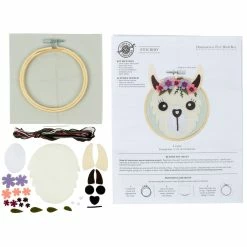 Craft an adorable wall hanging for your child’s play room or nursery or a wonderful handmade gift with this felt hoop kit. A lovely way to relax on a free afternoon or rainy day, just addΒ the tools needed to transform the included materials into a sweet llama face.
