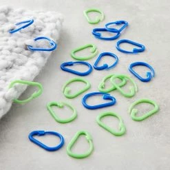Slip these stitch markers through your completed work to mark points of increase, decrease, buttonhole, placement or other markings. These green and blue markers come in a handy plastic storage box that snaps tight.